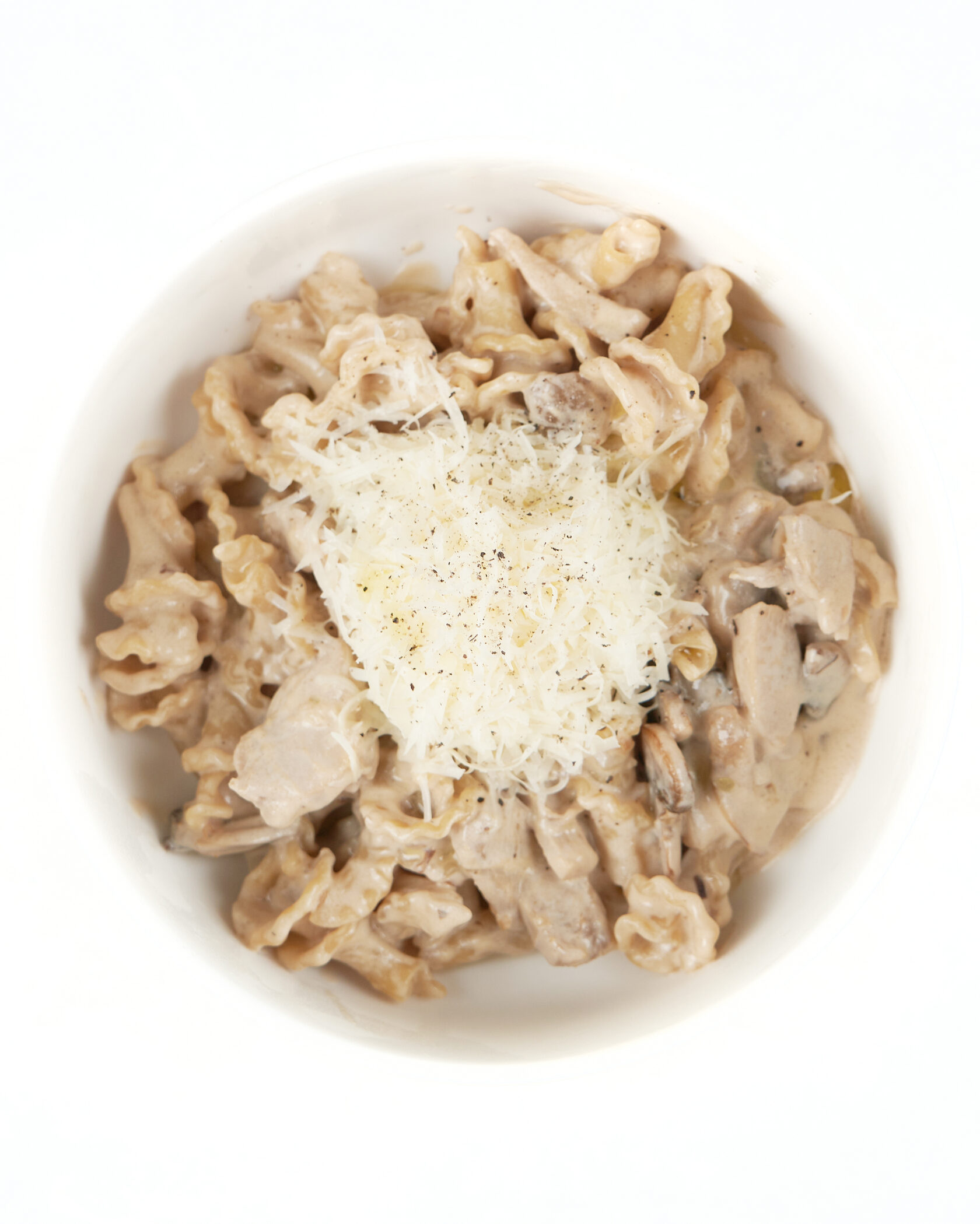 Паста кампанелле с курицей и грибами