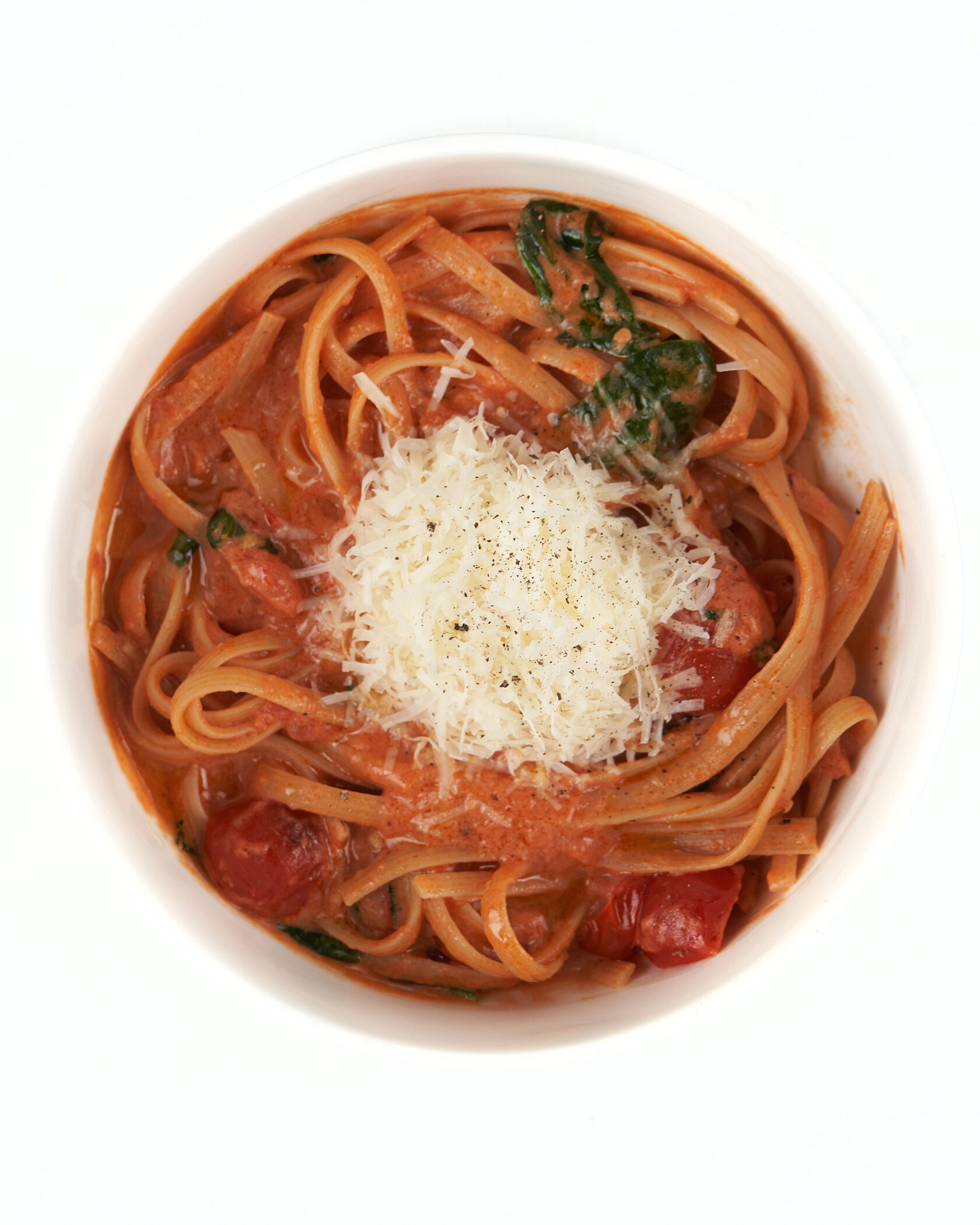 томат черри, базилик, чеснок, сливки, шпинат, оливковое масло, пармезан.